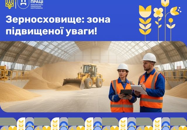 Консультує Державна служба з питань праці Робота у зерносховищах пов’язана з багатьма ризиками, які можуть загрожувати життю та здоров’ю працівників. Знання небезпек і дотримання правил безпеки допомагають їх мінімізувати. Основні небезпеки у зерносховищах: Пилові вибухи та пожежі. Нестача кисню, утворення токсичних газів (CO₂, аміак тощо). Засипання зерном під час роботи у бункерах та силосах. Падіння з висоти під час обслуговування обладнання. Травмування рухомими частинами транспортерів і механізмів. Заходи з мінімізації ризиків: Регулярна вентиляція приміщень і[…Читати далі…]