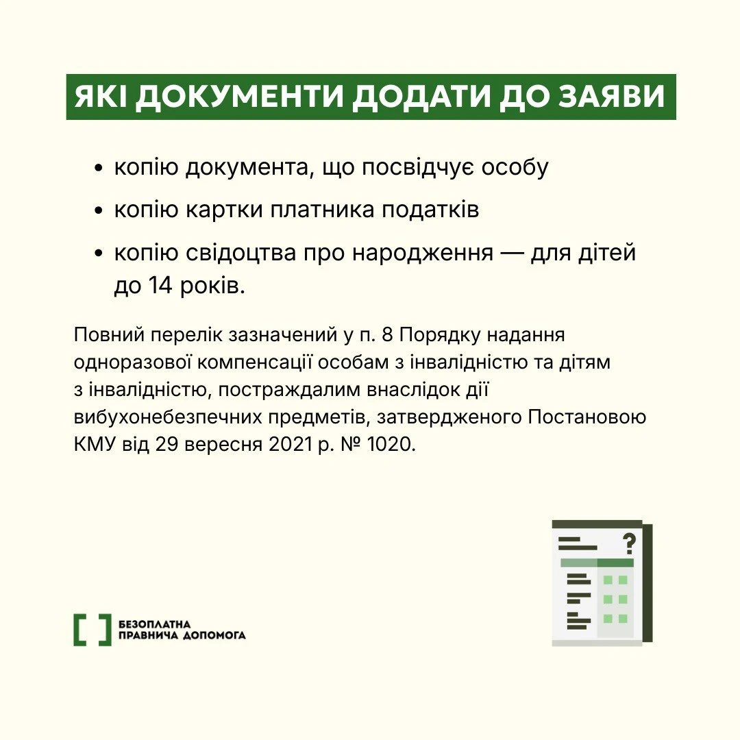 Хто має право на компенсацію, який її розмір та які документи потрібно подати – покроково у картках від юристів