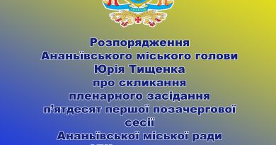 Розпорядження Ананьївського міського голови Юрія Тищенка про скликання пленарного засідання п’ятдесят першої позачергової сесії Ананьївської міської ради VIII скликання, проєкти рішень та додатки до них